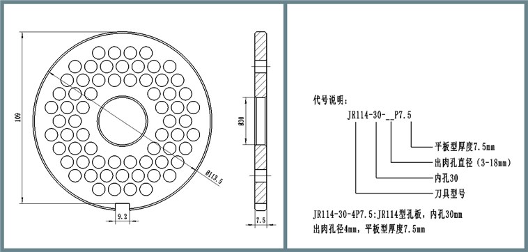 【应用范围】: 适用于JR114型用绞肉机,及孔板外径114mm的绞肉机